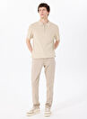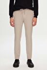 Ds Damat Slim Fit Bej Beli Lastikli Bağcıklı Fermuarlı Likralı Rahat Jogger Pantolon