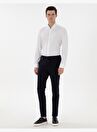 Lacivert Slim Fit Beli Lastikli Kanvas Pantolon