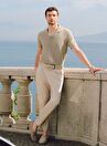 Ds Damat Slim Fit Haki Armürlü Yan Beli Lastikli Esnek Likralı Yandan Cepli Chino Pantolon